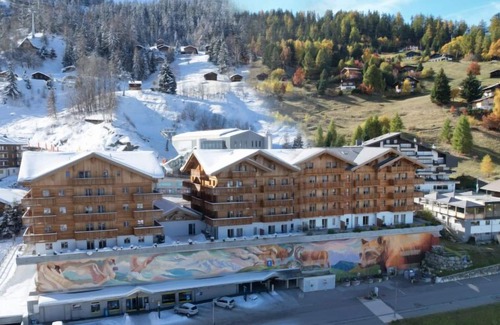 Modern, comfortable residence "T-Resort", 1'500 m a.s.l 4 storeys, built in 2017. 2 houses in the residence. 85 apartments in the residence. In the centre of La Tzoumaz, in a central, busy position, 100 m from the edge of the forest, 20 m from the skiing area. In the complex: reception, bar, shopping facilities, lift, sun terrace, storage room for skis, central heating system, washing machine (extra), tumble dryer (for shared use, extra), ski boot dryer. 4x4 car recommended in winter. Public car park at 20 m, extra. E-charging station. Supermarket 10 m, restaurant 30 m, bar 10 m, bicycle rental 10 m, bus stop "Télécabine" 20 m, thermal baths "Saillon Les Bains" 19 km. Golf course (18 hole) 30 km, tennis 500 m, walking paths from the house 20 m, ski lift, gondola lift, skisport facilities, slopes, ski rental 10 m, ski school 10 m, children's ski school, ski-kindergarten 30 m, sled run 20 m, ice rink 100 m, children's playground 100 m. Nearby attractions: Trottinettes Savoleyres - La Tzoumaz 20 m, Verbier-La Tzoumaz Bikepark 20 m, Maison de la forêt 2.2 km, Musée de la fondation Pierre Gianadda 30 km, Les châteaux de Sion 32 km, Gorges du Durnand 36 km. Well-known ski regions can easily be reached: Verbier 4 Vallées. Well-known lakes can easily be reached: Domaine des Iles 26 km. Hiking paths: Sentier des fables 20 m, Sentier La Tzoumaz - Croix-de-Coeur 20 m, Sentier des Sens 2.2 km. Please note: car recommended. Baby equipment (extra). Ski bus (free of charge). In case of good snow conditions, the house is accessible on skis. Loading and unloading of baggage is possible at the holiday house. Motorway 15 km from the property. Main road 10 m from the property. Railway line 14 km from the property. Airfield 28 km from the property. The photo is just an example. Additional accommodations can be booked. Property ref. CH1914.900.1-.8 is situated on the same property. The apartment must be returned on departure in a clean and tidy condition, with the kitchen area cleaned. The final cleaning (excluding the kitchen area) and the disinfection of the apartment are included in the price. In the T-Shop you can rent mountain bikes and e-bikes in summer and skis and snowboards in winter.