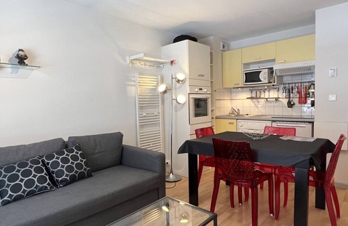 A 5-minute walk from the shops, modern, well-appointed 36m2 T2 alcove flat for 4 to 5 people.A balcony for eating outside and enjoying the view, a covered parking space to make it easier for you to get to the Pont d'Espagne or elsewhere, a ski locker. Wifi internet access.On the first floor of a recent residence with lift located rue de la Raillière, this flat has:A living room with fully-equipped kitchenette (induction hob, fridge, dishwasher, traditional oven and microwave, filter coffee maker, toaster, kettle, raclette and fondue machine), dining table, lounge area with sofa bed (sleeps 2), Orange TV bouquet wifi, children's games.Master bedroom with walk-in wardrobeAn alcove with bunk bedsA shower roomSeparate WC.A large balcony will allow you to take your meals outside, or simply enjoy the view.The flat has a private covered parking space and a cellar for storing your skis, luggage, equipment... You will be a3mn walk from the shops in Cauterets, 10mn walk from the cable car. Free shuttle buses are available during school holidays and weekends in winter.Bed linen, towels and end-of-stay cleaning are not included in the rental price. However, these services are available at extra cost if required.