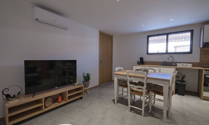 T2 ground floor villa in downtown Porto-Vecchio is located in Porto-Vecchio. T2 ground floor villa in downtown Porto-Vecchio provides accommodation, featuring Laundry, Air Conditioner, TV, among other amenities. This Apartment features Laundry, Air Conditioner, TV, to make your stay a comfortable one.