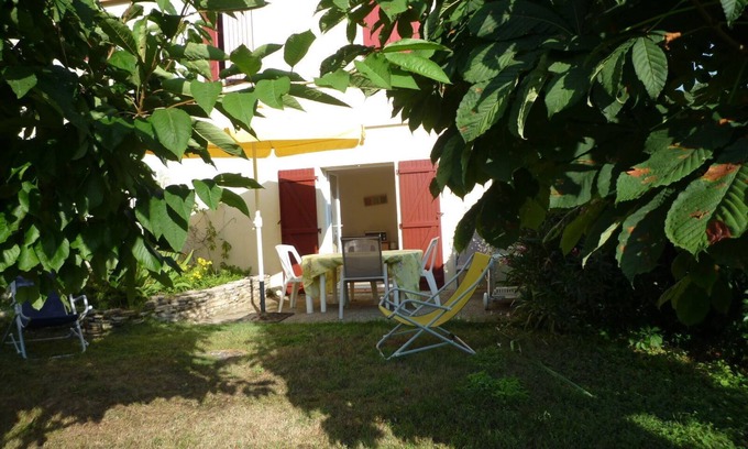 The holiday home is a kitchen, a bedroom with a double bed, a sofa, two people in the living room, bathroom with toilet. Living room overlooking the garden. Table umbrella chairs and sun loungers. Internet connection. wifi.