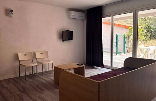 Accommodation: Enjoy your holiday in the beautiful town of Vernet les Bains with this cozy T2 for 5 people. Escape during your stay with this T2 including:- a night corner with double bed- an equipped kitchenette - one bedroom with two single beds- a bathroom- a common terrace- a private parking space - a collective swimming pool Please note, Bed linen and towels are not included Tourist taxes and deposit cb to collect on arrivalBenefits included: