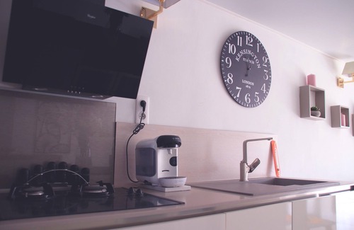 A new Mobalpa Kitchen fully equipped for your culinary desires with a brewed heat oven, a microwave, a food processor, an American fridge with fresh water and ice dispensers. A cooker hood is of course present to evacuate the smell of your preparations using the combined gas and induction hob.