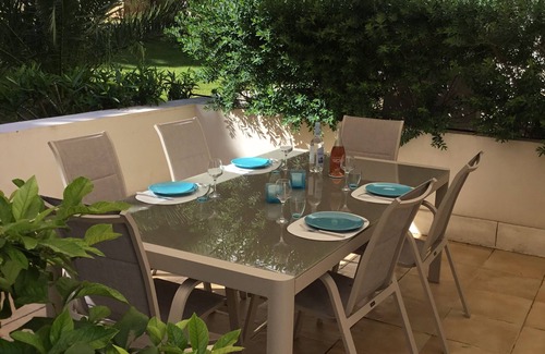 Domaine Maria Stella is a gated and secure residence in a beautiful park with swimming pool kept in July -Aout