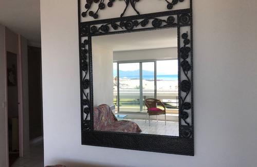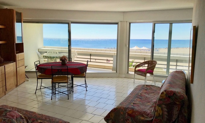 Direct beach, 2 bedrooms and living room have a superb view of the sea and Albères (Pyrenees), tastefully decorated, comfortable, balcony / terrace of 29 m2.