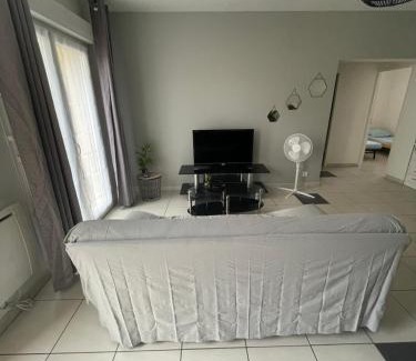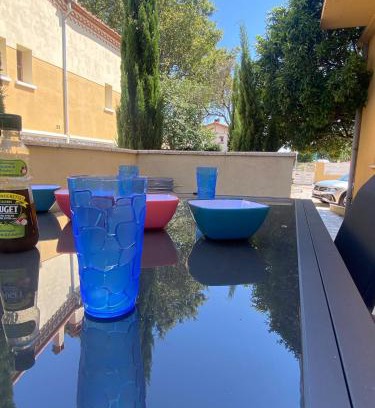 Offering a garden, T3 rdc, terrasse ombragée, parking avec portail features accommodations in Saint-Laurent-de-la-Salanque. The air-conditioned accommodation is 9.1 miles from Stade Gilbert Brutus, and guests can benefit from on-site private parking and complimentary Wifi. Reserve Africaine de Sigean is 30 miles away and Circus Casino de Port Leucate is 6.6 miles from the apartment. Featuring a terrace and garden views, the apartment includes 2 bedrooms, a living room, cable flat-screen TV, an equipped kitchen, and 1 bathroom with a walk-in shower. Towels and bed linen are available in the apartment. For added privacy, the accommodation has a private entrance and is protected by full-day security. Queribus Castle is 27 miles from the apartment, while Collioure Royal Castle is 30 miles from the property. Perpignan - Rivesaltes Airport is 10 miles away.