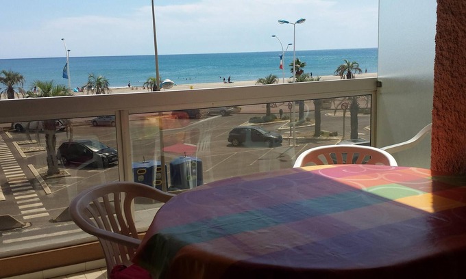 T3 of 55 m2 for 4 people located on the seafront on the 2nd floor ideally close to the city center (400 m from the Mediterranean square) without undergoing the nocturnal sound animation.