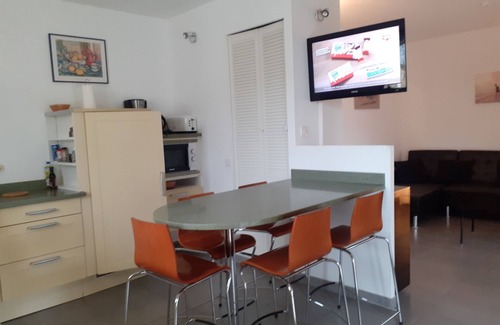 T3 shaded terrace apartment in a small village 20 minutes from the beaches is located in Saint-Bres. T3 shaded terrace apartment in a small village 20 minutes from the beaches provides accommodation, featuring Air Conditioner, TV, Sports/Activities, among other amenities. This Apartment features Air Conditioner, TV, Sports/Activities, to make your stay a comfortable one.