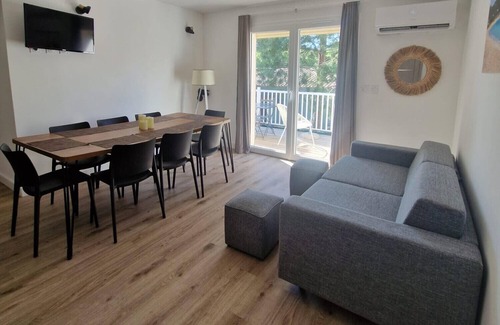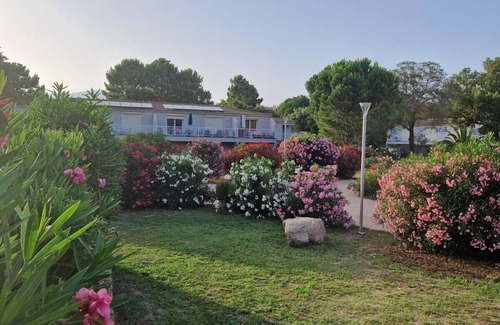 Apartment in hotel residence in a quiet and green setting in Cala Rossa, near Portovecchio, Capacity for 8 people.Accommodation of 75 m² tastefully furnished and fully equipped.It has a terrace with garden furniture, internet access, electric heating, air conditioning and parking.The American glass-ceramic kitchen is equipped with refrigerator, microwave, freezer, crockery/cutlery, kitchen utensils and coffee maker, toaster and kettle.hair dryer.You have access to a garden, a pool house where you can have a drink, eat a pancake or enjoy a delicious ice cream around the very large and beautiful 350 m2 swimming pool.Continental breakfast is served from 7:30 a.m.Bike rental is available on site, the reception is open every day in season.The property is located 900 m from the fine sand beach of Cala Rossa, 4 km from the CASINO TRINITE supermarket, 8 km from the Cavu river, 10 km from the city of PORTO- VECCHIO", 18 km from the "LEZZA" golf course, 33 km from the "Figari" airport, 40 km from the "SPERONE" golf course and it is located in an ideal area for families and near the sea.