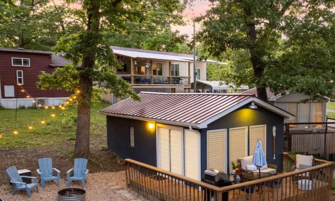 Introducing "Tackle Box 21" where the spirit of adventure meets the tranquility of the Lake of the Ozarks. Nestled in the wooded cove of a charming lakeside neighborhood near popular restaurants & attractions, these rustic cabins have stood as beacons of lakeside charm for generations.
