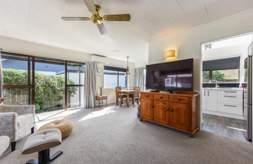 Providing a garden, Tahunanui Shoreside - Nelson Holiday Home features accommodations in Nelson. The property is around a 4-minute walk from Tahunanui Beach, 2.9 miles from Trafalgar Park, and 3 miles from Christ Church Cathedral. Private parking can be arranged at an extra charge. With free Wifi, this 2-bedroom vacation home provides a TV, a washing machine, and a fully equipped kitchen with a microwave and toaster. The accommodation is non-smoking. Nelson Airport is 1.2 miles away.