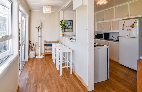 This Takamatua bach includes compact and casual living, including a lounge, dining room, plus a full kitchen - the Nespresso machine adds a sweet touch for the coffee lovers, or share a meal with your group and look out to sea!
