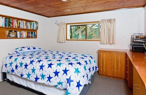 Upstairs at this Omaha accommodation, bedroom 1 has a king bed. Downstairs, bedroom 2 includes a queen bed, bedroom 3 has a king single bed with a single trundle bed, and the second lounge is fitted with a double sofa bed. To complete your convenient group set up, there is a bathroom on each floor.