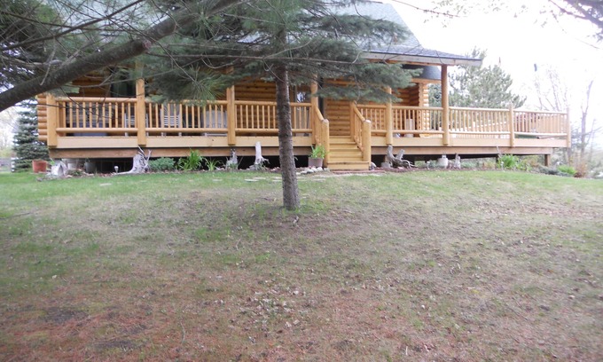Accommodations: Chalet style log home, 2 main floor bedrooms, large loft sleeping area, ( cabin sleeps 6-8), 2 bath.