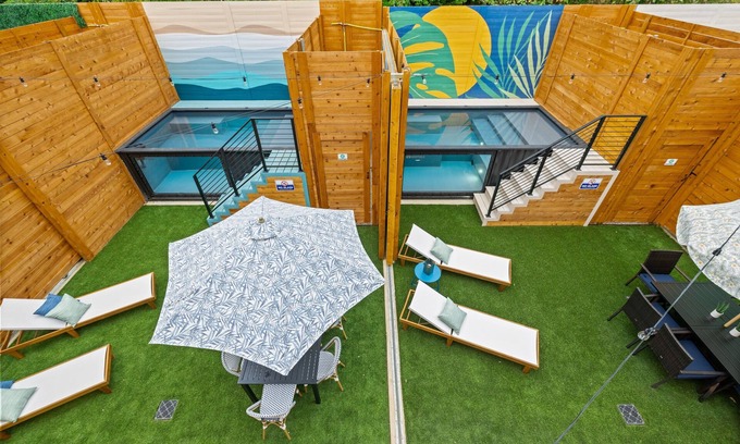 Each pool features a separate, uniquely designed backdrop that makes for the perfect Instagrammable moment. From colorful murals to striking architectural details, the designs are as creative as they are photogenic. These one-of-a-kind backdrops will ensure that your stay is not only fun but visually unforgettable. Whether you're hosting a poolside gathering or simply lounging by the water, you're guaranteed to capture memories you’ll want to share!