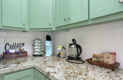 KITCHEN: Fully equipped, stainless steel appliances, granite countertops, tile backsplash, coffee bar, water kettle, many small appliances, knife set, basic spices and more.