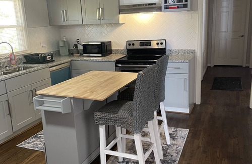 Want to be minutes from Birmingham? This home is central to the downtown area or minutes from downtown Homewood. It features an incredibly newly renovated kitchen and bathroom. Quiet location to kick back and relax. This location is perfect for the quiet getaway or the professional traveler seeking a calm and quaint environment . Just the perfect size for a small family or single travelers. The kitchen provides island seating for you and your family and friends to gather for great conversations . There’s also a separate seating area in the dining room that joins the family room. This home features 2 bedrooms for shared space and space for family entertainment. The patio space is also great for entertaining. There’s a separate office space that can also be set for a third bedroom with inflatable mattress upon request and a nominal fee. Linen, soap, and toiletries are provided for short stays. This home is perfect for the short stay you need with a 2 day minimum and for longer stays with a 3 month maximum. This home is perfect for your next travel arrangement. We look forward to hosting you soon!