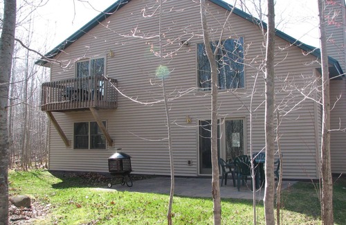 Just One More Lodge is a new north woods lodge that offers the perfect retreat for your family and friends. It has a fully equipped kitchen including two refrigerators, dishwasher and dining area. The living room includes a beautiful split stone fireplace, lots of windows to see the surrounding woods, and an entertainment center that includes a large TV, VCR, DVD, CD player, and local Cable TV. Just One More Lodge has WIFI on site. Master bedroom located upstairs has queen size bed, its own bathroom with Jacuzzi tub, and small private balcony. Two more bedrooms upstairs, each having a queen size bed. One of the two upstairs bedrooms also has a set of bunk beds. The other has a full size bed in it. There is also a "crow's nest" with a full size mattress. Second bathroom upstairs has a shower. The downstairs bedroom has queen and bunk beds and private access to bathroom with shower. A fantastic outdoor shower, a large propane grill, and a mobile outdoor fire pit are also available. There is a front and back patio to relax outside and enjoy the scenery. There is also an outside dog kennel.