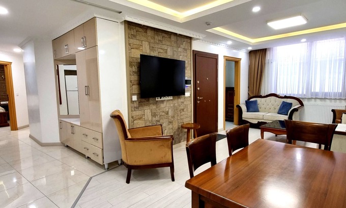 Discover a spacious 110 square meter apartment, designed to offer comfortable accommodation for budget-conscious groups and families. The open kitchen serves as a social hub, perfect for preparing meals and gathering with friends. While located on the -1 level, this apartment offers ample space and modern amenities, providing a practical base for your Istanbul adventures.
