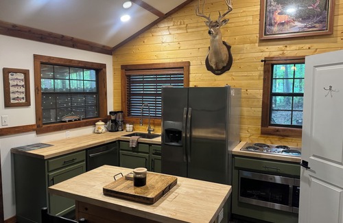 *Note* the cabin is connected by a deck which separates it from our bigger cabin. We have friendly dogs and cats that love to greet the guest.