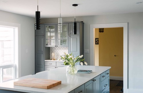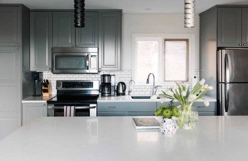 The sprawling layout of Tanglewood is what makes it the perfect place to gather your family together for a vacation filled with relaxing conversation, cooking together, sitting fireside, and sharing lots of laughs. The newly renovated kitchen offers ample space to gather round as you cook a delicious meal or chat over morning coffee. Fully equipped with cooking tools, appliances, and staples - this space will make it easy to entertain a big group and serve up some sweet memories as you prepare food during your stay. The kitchen and dining room make up one space in the cottage and feature a record player with a wide selection of records to choose from. Kitchen dance party, anyone? Not to mention, the view from the kitchen is one to beat. Large windows look out over the Adolphus Reach, the river that spans between PEC and Adolphustown on the opposite side. Catching a sunset will make tidying up from dinner a little more desirable while you’re here.