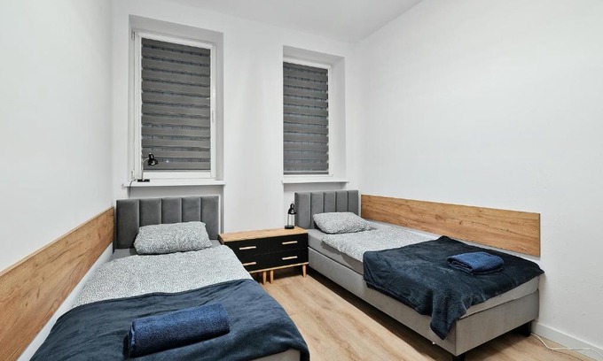 Tanie Spanie offers accommodations in Legnica, a 11-minute walk from Art Gallery and 0.6 miles from Legnica Cathedral. Among the facilities at this property are a shared kitchen and private check-in and check-out, along with free Wifi throughout the property. The apartment features 3 bedrooms, a fully equipped kitchen with an oven and a microwave, a washing machine, and 1 bathroom with free toiletries. Towels and bed linen are provided in the apartment. The accommodation is non-smoking. The nearest airport is Copernicus Wrocław Airport, 42 miles from Tanie Spanie.