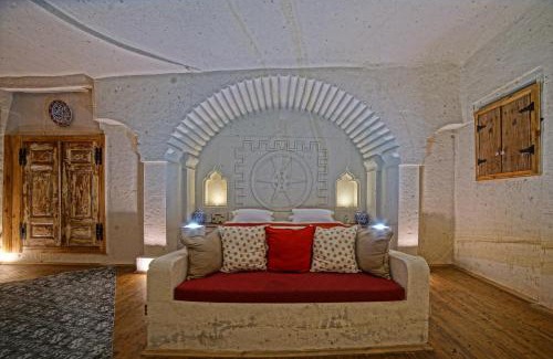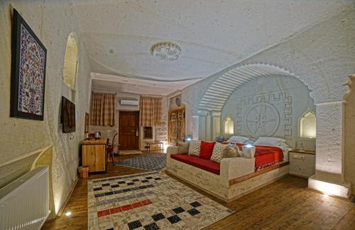 Located in Ürgüp, a 8-minute walk from Nikolos Monastery, Taru Cave Suites has accommodations with a garden, free private parking, a shared lounge and a terrace. Each room at the 5-star hotel has garden views, and guests can enjoy access to a hot tub. The property provides a 24-hour front desk, airport transportation, room service and free WiFi throughout the property. All rooms at the hotel come with a seating area, a flat-screen TV with satellite channels, a safety deposit box and a private bathroom with a shower, free toiletries and a hairdryer. Every room includes an electric tea pot, while some rooms also offer a balcony and others also have city views. At Taru Cave Suites all rooms have bed linen and towels. Breakfast is available every morning, and includes buffet, vegetarian and vegan options. At the accommodation you'll find a restaurant serving Indian and Turkish cuisine. Vegetarian, dairy-free and halal options can also be requested. Urgup Museum is a 11-minute walk from Taru Cave Suites, while Zelve Open Air Museum is 7.8 miles from the property. Nevşehir Kapadokya Airport is 29 miles away.