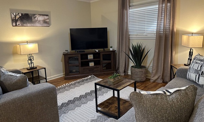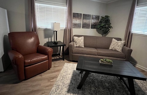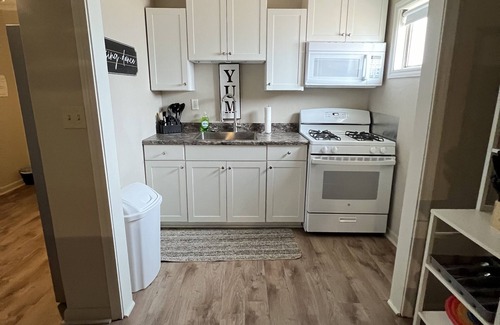 This 1-bedroom apartment is cute & spotlessly clean makes you feel at home. Stocked with snacks and a few favorite beverages. Great coffee bar to start your morning. Walking distance to a fun restaurant & we give you a discount coupon! All the necessities if you want to cook and dine in. Just a few feet away from a super clean laundry mat.