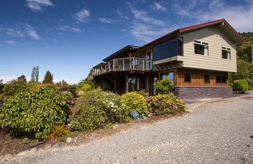 Set among lush, tranquil gardens, Tasman Hideaway is a 4-bedroom 3-bathroom Marahau holiday home with Wi-Fi. Perfect for a secluded retreat, this spacious house enjoys ample indoor/outdoor living space just minutes from the waterfront, and 800m away from the start of the Abel Tasman Walking track and the Park Cafe!
