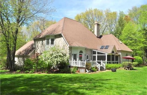 Welcome to our classic New England large home in Simsbury! Nestled in the woodlands, this 2.8-acre retreat offers a tranquil escape for up to 15 people. Our home provides a safe secluded space. The perfect monthly rental; take a tranquil get away with sledding, hiking right in your back yard! Boating, fishing, and swimming all all within 10 minutes of our peaceful getaway. Message us about our special packages!