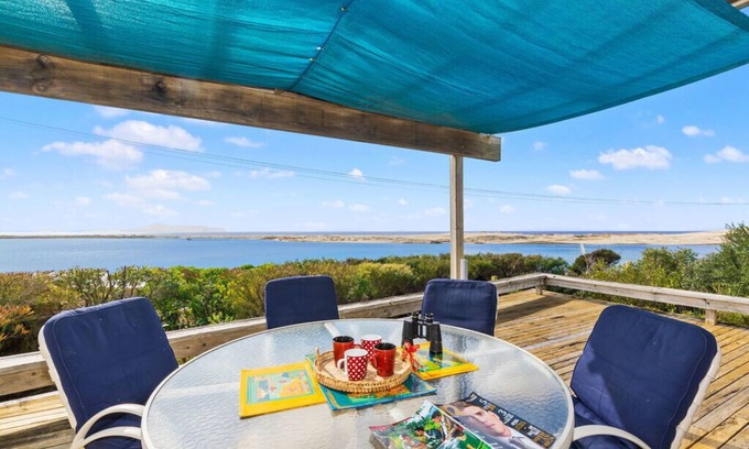 Situated on a hill, kick back and relax while overlooking the picturesque estuary, sand dunes, and out to Hen and Chick Islands.