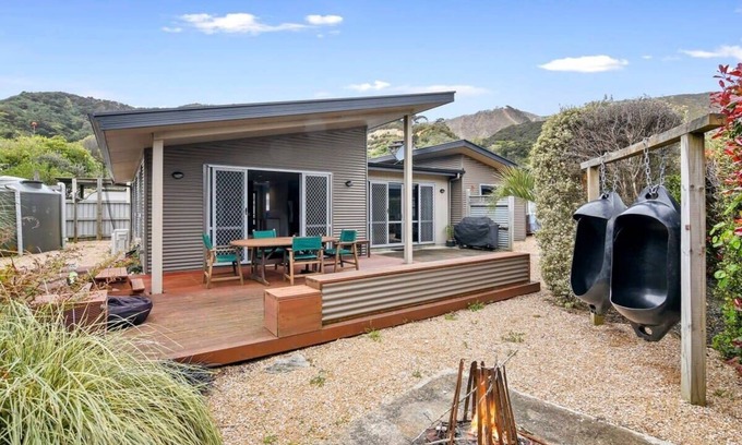 Enjoy this modern house that has many extras to make your stay a truly great holiday to remember Golden Bay holiday. It is located just a few minutes walk from the very sought after area of Tata Beach. The golden sands of the beach offers safe swimming, boating or just relaxing. A few minutes drive takes you to spectacular limestone cliffs popular with rock-climbers. Within a few minutes by car are Tarakohe Marina, with a launching ramp for larger boats, tennis courts, golf course, general store and cafes.