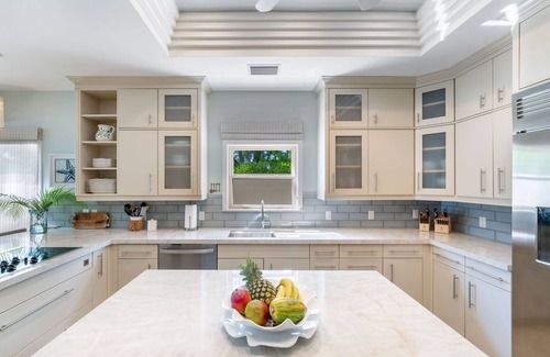 Gourmet kitchen fully fitted with additional double ovens, warming draws, 5 burner cooktop ideal for family friendly dining to Private Chef experiences.