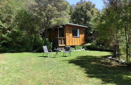Listen to native bird song, watch stunning sunrises, and stargaze from lovely Tauhou cabin, at Ao Marama Retreat.