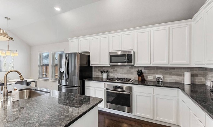 Professionally managed 24/7 by Texas Corporate Homes who specializes in insurance temporary housing. Experience comfort & convenience at this spacious 4-bedroom Starlight Creek home. With 3 bathrooms and 2,306 sqft of space, it's perfect for families or groups. All bedrooms, including a king master suite & 3 secondary rooms, are on the first floor. Working remotely? There's a dedicated office area. The property also features a 2-car garage and a fenced pet area. It's an ideal base for your stay.