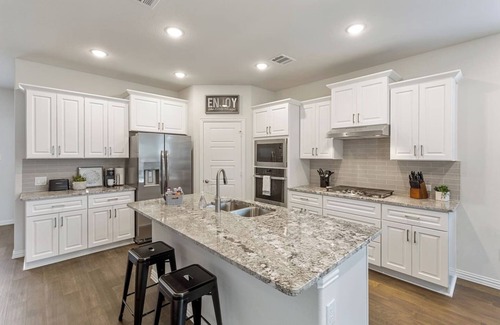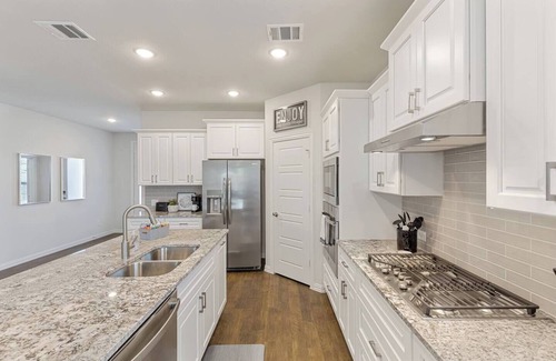 Professionally managed 24/7 by Texas Corporate Homes who specializes in insurance temporary housing. Luxuriate in our spacious 5-bedroom home on Ironstone Road, Northlake. With 3,008 sq ft of comfort, our home offers a dedicated private office, perfect for remote work. Enjoy the convenience of a 2-car garage and a fenced pet area. The master bedroom fitted with a king bed is on the 1st floor, while the 2nd floor houses the remaining rooms with a mix of queen and twin beds. No pool available.