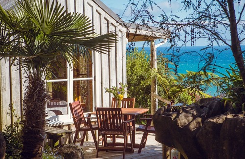 Our cosy, charming, fully equipped Chalet is very homely, with an old fashioned bath. An ideal vacation rental for the romantic. Secluded amongst limestone outcrops at the top of our organic garden. Sit on the veranda overlooking hills with dramatic rock formations and the West Coast sea rolling in. Warm, frost-free micro climate. A unique stretch of unspoilt coastline which is magical to explore and fish, with hardly a soul in sight. Ten minutes walk to the sea and private vehicle access (10 mins) to a magnificent white sand beach, protected by reefs forming a lagoon at low tide safe for children to swim. Extensive elevated walks reward walkers with magnificent views over the Tasman Sea, Westhaven Inlet, regenerating podocarp forest on our farm and the Kahurangi National Park. Explorers, photographers, botanists, geologists, surfers, swimmers, cavers and wild landscape lovers have all visited and love Te Hapu as we do. Te Hapu is available year round for holiday lettings.