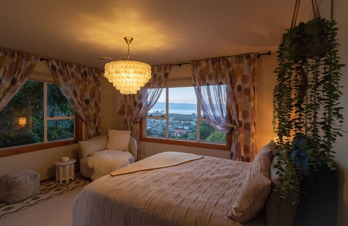 Situated above the Tahunanui Sandspit, this place offers stunning views of Tasman Bay and Kahurangi National Park. It's just a quick 5-minute drive from the airport, Central Nelson, and the popular Tahunanui Beach, making it super convenient for exploring local dining spots nearby.