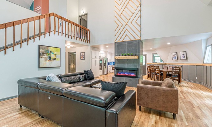 WORK: Impress your colleagues with your pick of our recently renovated, cool dome house. We've got a 120 inch screen with a projector for presentations, and an 8 person hot tub to relax and socialize. 6 king bedrooms, a modern bunkroom with Twin XLs and a loft mean that everyone gets their own space.