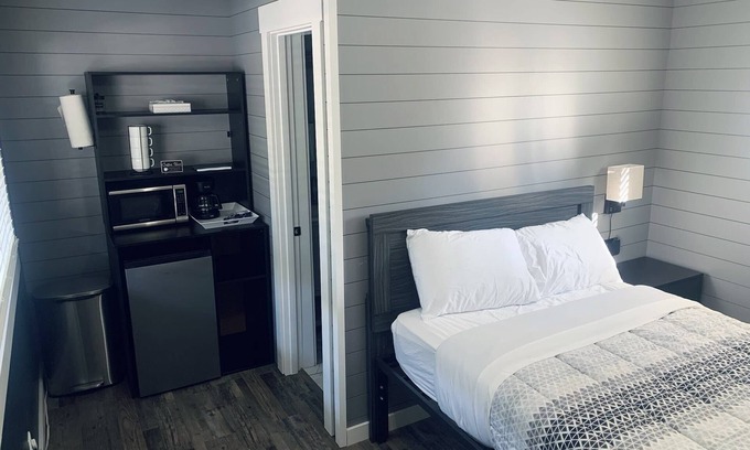 A cozy room that sleeps 1-2 guests with 1 double bed with clean sheets and a lightweight comforter. The room is stocked with essentials for coffee, mini fridge/freezer, microwave and extra shelves for storage. The private bathroom is stocked with toiletries and has a full shower w/bath tub. Enjoy your own AC/heating unit to adjust the temperature of your room to your liking. Tune into your favorite show or sports game on a flat screen TV and free WIFI for all streaming devices and accounts.