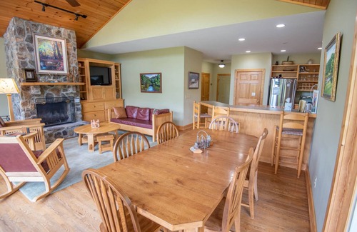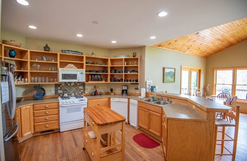 At this relaxing mountain house you'll enjoy the reflected light gleaming on the hardwood floors. On the first floor you'll find it a pleasure to prepare meals in the fully stocked kitchen, which includes a food processor, a slow cooker and on the porch there's a gas grill.