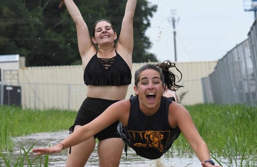 Tent Camping for Rock The South. 1/2 mile walk to the entrance. A real bathhouse for tent campers only wristbands must be worn. 4 people 1 tent, one pop up tent and one vehicle. Gas grills only. 2.1 miles to Wal-mart for supplies. Cheap food truck and awesome Karaoke on Wednesday night so practice up.