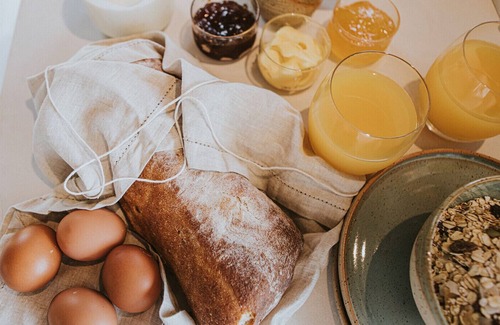 + Breakfast for 2 (Fresh laid farm eggs, Loaf of bread, Muesli, Milk, tea,