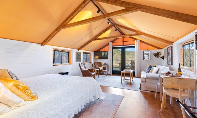 We have 4 other cabins on the property, The Rocking F Rambler (1 BR), Carmel Cabin (1 BR), Casita Juanita (1 BR Efficiency) and The Lodge at Basecamp (4 BR w/ detached bunk room). We also have 4 additional glamping tents...bring your friends and family! Thank you for considering our experience in glamping...we hope to see you soon!