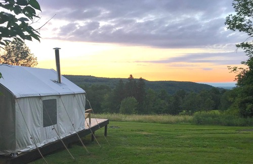 One-of-a-kind site with 90 mile views of the Adirondack and Green mountains. Think British Colonial at this fully appointed luxury campsite. Just a 22 mile scenic drive to the famous Cooperstown's Baseball Hall of Fame and breathtaking Otsego Lake. Reenact scenes from "Out of Africa" at this stunning romantic site.