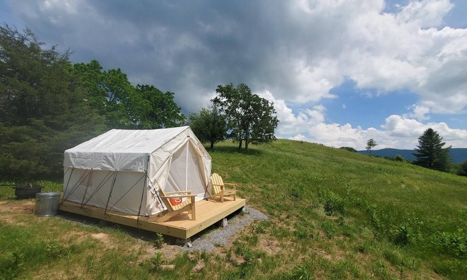 Get to your happy place fast! This retreat is a short drive of about 10 minutes off Interstate 77 in picturesque Bland, VA. It's likely you will not be camping alone as deer are abundant. This private 100 acre property borders the Jefferson National Forest and is thick with hardwoods and pine trees which create a surreal quiet experience. However, the cleared campsite area allows unobstructed mountain views and sunsets your friends will envy. There are no neighborhoods insight. No traffic noise, just singing birds and the occasional moos from cows at the neighboring farm. If too much peace and quiet and sitting around is not your thing there are several nearby attractions including access to the Appalachian Trail (beautiful stream with nice hiking trail and access point within 10 minute drive), sightseeing at the Big Walker lookout tower (10-15 minute drive), a visit to Dismal Falls (30 minute drive), hiking, or biking on the New River Trail or the famous Virginia Creeper Trail (30 minute drive). The nearby town of Wytheville (20 minute drive) has lovely small town shops & fun brewery scene and nearby winery. Visit one of the nearby Amish markets and enjoy homemade treats (several within 30 minute drive).