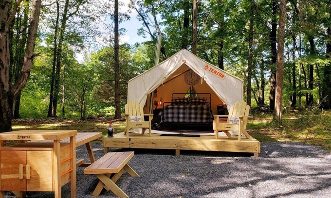 Luxury Camping! We are the sweetest Tentrr or Glamping site around! Our host really knows how to roll out the red carpet! Full bath with hot water....We know how to Glamp!!!We are open as long as weather allows.