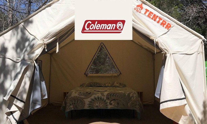 This Tentrr site is outfitted with an extensive range of Coleman camping gear. Unwind in style with a large cooler, grill, shade canopy, lanterns, speaker, camp chairs, wagon, and more! (Campers must bring their own pot/skillet, cooking/eating utensils and plates.)