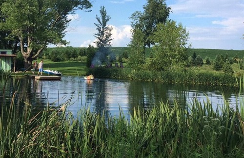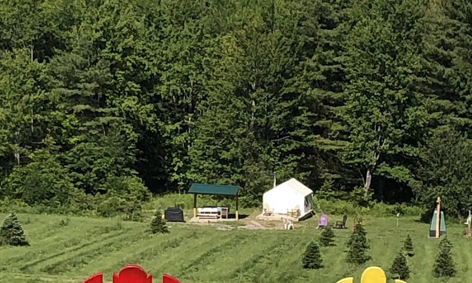 We also include everything you'll need to make your morning cup of coffee on the grill and a complimentary s'mores kit. You're welcome to enjoy the pond located down the hill from the campsite - fish (catch & release), swim and use the paddle boat. If you're looking for a challenge, complete the tree farm scavenger hunt. Animal Adventure, home of April the Giraffe, is 3 miles away. Our local craft brewery, the Beer Tree, is open for dinner, as well as lunch on Saturdays and brunch on Sunday. In addition, Cole Park and Chenango Valley State Park are close by for a day of hiking and adventure. We have built a roof over our picnic table. We also have propane heat available.