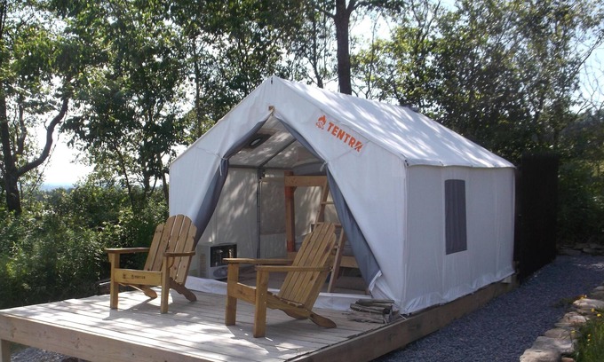 The perfect campsite for campers looking to enjoy nature to the fullest. The property has 250 + acres. Elevation : 1,300' with numerous trails in the forest for camping, hiking & ATV's. There are two ( 2 ) camp sites on the property. Hogan's Landing and Crystal Pond. Hogan's Landing is a stand along private site on top of the hill and the Crystal Pond site located among the meadows. The Crystal Pond site is shared for swimming. Fire wood available for purchase at the camp site. This Hogan's Landing campsite has a spectacular view of the pond and valley . Running water with sink & shower located in a private area behind the tent. LED lighting is also provided at the campsite. You have access to the crystal clear pond with fountains, a swing, dock, canoes and paddle boat. If you like to golf, we have a Driving Range, along with a Horse Shoe pit and a Volleyball / Badminton net. Two ( 2 ) runways for those that want to fly-in. ( NY05 ) Fantastic Views!!!!! Sightseeing flights thru the valley available. At both sites we ask when leaving, they must remain as you arrived and what was carried in must be carried out. At present there are no dumpsters available. Final note : If you prefer to use the whole property exclusively please contact us and for an addition charge we will block the other site.