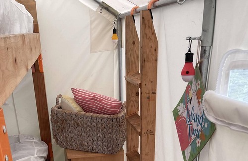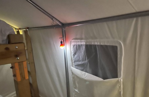 The days are getting warmer, and now is a great time to camp! Two queen size bunk beds can hold 4, Rent the extra tent or bring your own up to 10 people. $20 each person over 4! Sit back and relax at our Maine campsite, this site is set off from the road to give it plenty of privacy, there is a short 5 min walk from where you park to the site. If you need help, give us a shout and we can try to coordinate to meet you. We are located a bit over an hour to Portland and 22 mins from Damariscotta and the beautiful Maine coast! Nestled in the woods, a great place to enjoy nature but close enough to enjoy many of the tourist attractions that Maine has to offer. Farmers markets, craft breweries. This site has upgrades! We have an outhouse, pump sink, and soon to come shower! Check out our Extras page. Dogs & Kids are welcome. Battery powered lights can add romantic ambiance! You can check us out on FB to see a video tour! https://www.facebook.com/JourneysNdFarm
